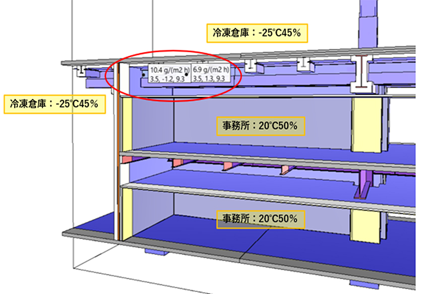 冷蔵倉庫では、外気との熱移動や異なる温度帯の倉庫間で躯体を通じて熱が伝わることで、ヒートブリッジ(熱を伝えやすい部分)が発生し、結露などの問題が生じる可能性があります。
